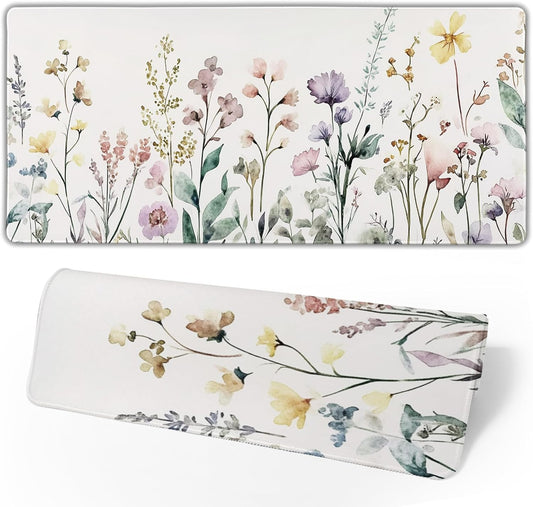 Floral Desk Mat Beige Boho Desk Pad Large Extended Gaming Mouse Pad XL Cute Minimalist Flowers Keyboard Mat 31.5X11.8 Inch Boho Esthetics Mousepad Big Keyboard Mouse Mat for Home Office Work Game